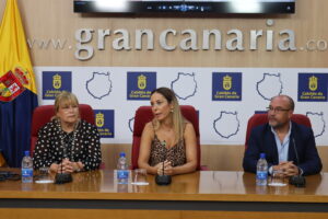 De izq a dcha. Isabel Costes, Guacimara Medina y Dámaso Arencibia durante la presentación del certamen de Valleseco