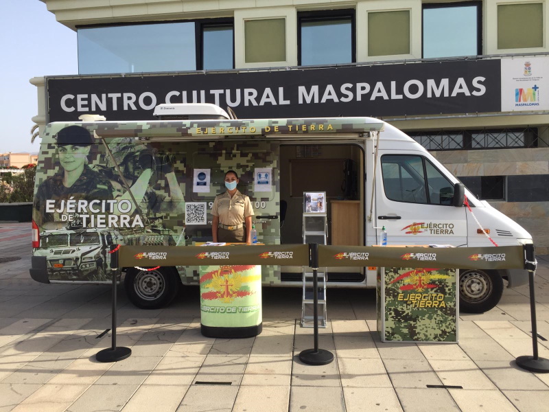 INSTALACIÓN EN MASPALOMAS DE UN PUNTO DE INFORMACIÓN MÓVIL SOBRE LAS VÍAS DE INCORPORACIÓN AL EJÉRCITO DE TIERRA Y CONVOCATORIAS DE 2021.