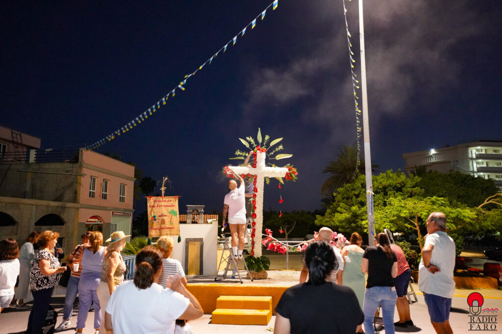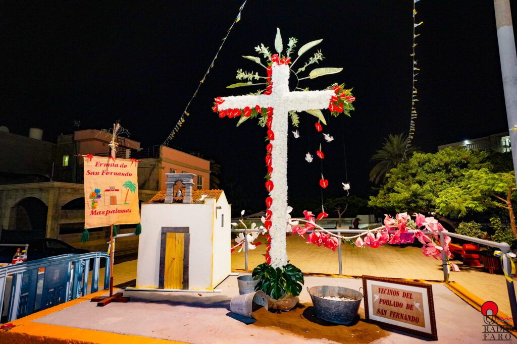 El Poblado de San Fernando de Maspalomas, donde cada calle es una estampa viva del recuerdo, la historia floreció este año en forma de cruz. Una cruz enramada por primera vez por sus propios vecinos, como acto de fe, tradición y, sobre todo, de vecindad.