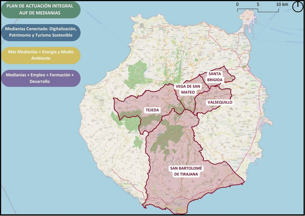 La Mancomunidad de Municipios de las Medianías de Gran Canaria ha presentado el Plan de Actuación Integrado (PAI Medianías 2030), una estrategia territorial supramunicipal que busca transformar la comarca a través de la sostenibilidad, la transición energética y la creación de empleo. La inversión prevista asciende a 15 millones de euros, de los cuales 12,75 millones podrían proceder del Fondo Europeo de Desarrollo Regional (FEDER) 2021–2027, mientras que la Mancomunidad asumiría la cofinanciación restante.