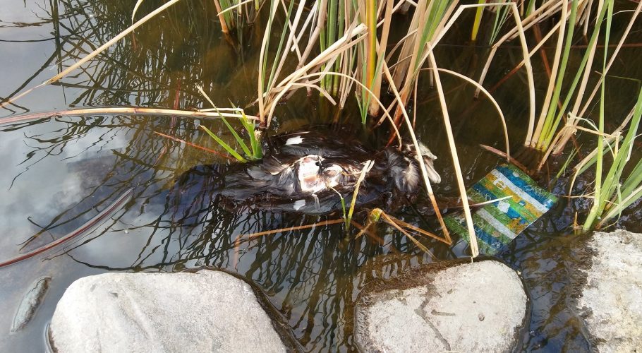Unas imágenes desagradables que muestran la presencia de ratas en la misma charca alimentándose del cadáver de un pato