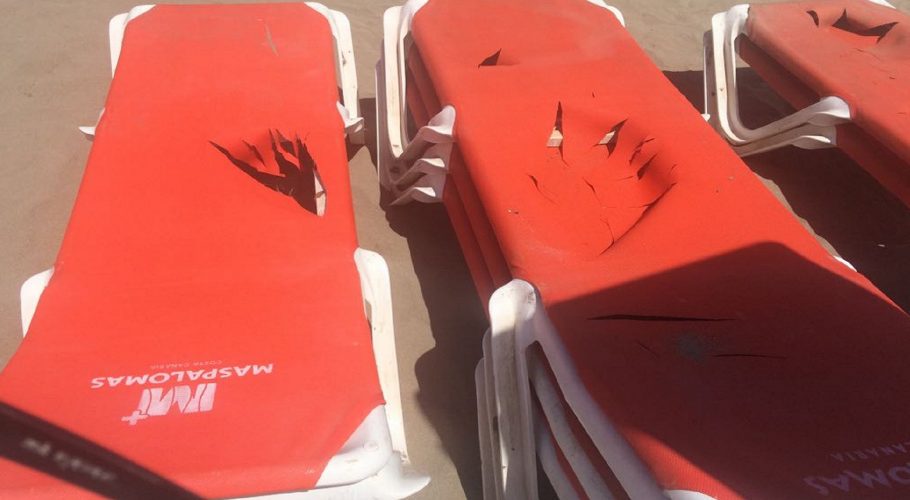 Un “feroz ataque vandálico” inutiliza un grupo de hamacas de la playa del Inglés