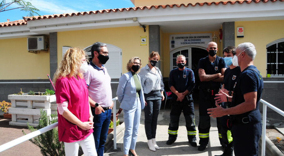 Los Bomberos de San Bartolomé de Tirajana realizan un simulacro en el Centro de día de Alzheimer y otras demencias.