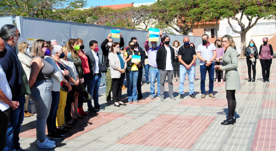 * La alcaldesa Conchi Narváez mostró, en un emotivo acto a las puertas del consistorio con ciudadanos ucranianos afincados en el municipio, su apoyo en una declaración suscrita por todos los grupos * “Hace días que no he podido contactar con mis padres. No hay electricidad,…